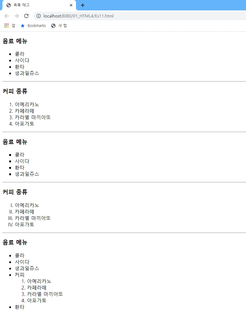 <!--목록 안에 목록도 생성 가능하다-->
