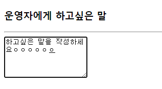'하고싶은 말을 작성하세요'는 클릭한다해서 없어지는 텍스트는 아니다. 그냥 입력하면 아래와 같이 된다.