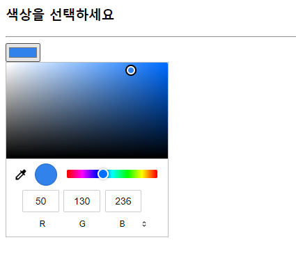 원하는 색상을 선택할 수 있고, 선택한 색상의 rgb값이 나타난다.