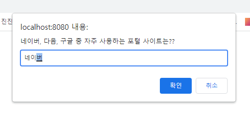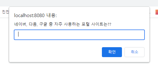let site = prompt("네이버, 다음, 구글 중 자주 사용하는 포털 사이트는??");