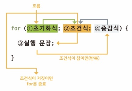 1. 초기식 : 처음에 한번만 실행됨(변수 선언)