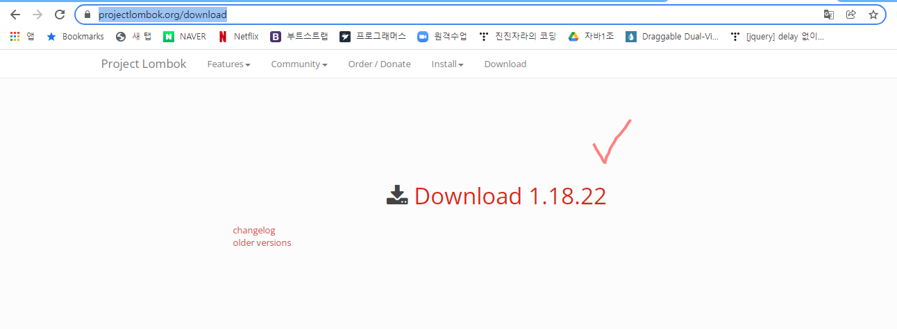 위 사이트에 접속해서 lombok.jar 파일을 다운받거나,