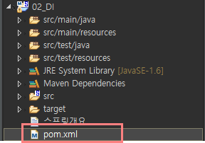 5. Spring으로 돌아와서, pom.xml 파일 클릭