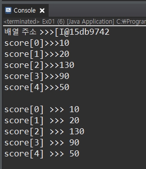 System.out.println("배열 주소 >>>" + score); //배열주소