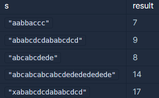압축할 문자열 s가 매개변수로 주어질 때, 위에 설명한 방법으로 1개 이상 단위로 문자열을 잘라 압축하여 표현한 문자열 중 가장 짧은 것의 길이를 return 하도록 solution 함수를 완성해주세요.