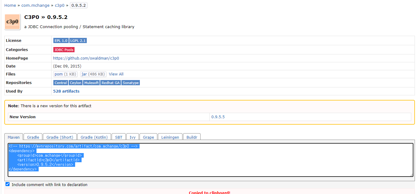 1. https://mvnrepository.com/artifact/com.mchange/c3p0/0.9.5.2