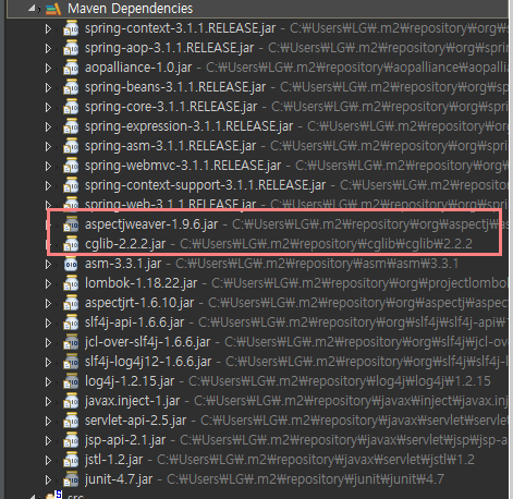 <!-- Spring AOP Aspectjweaver 라이브러리 -->