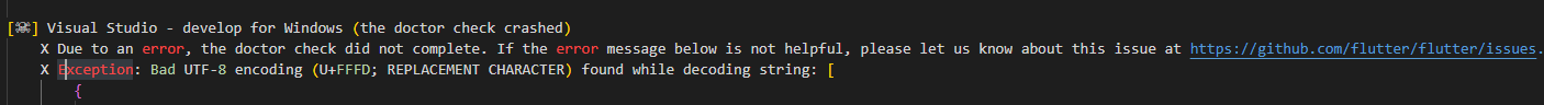 [windows] Exception: Bad UTF-8 encoding when running flutter doctor or building/running for Windows · Issue #102451 · flutter/