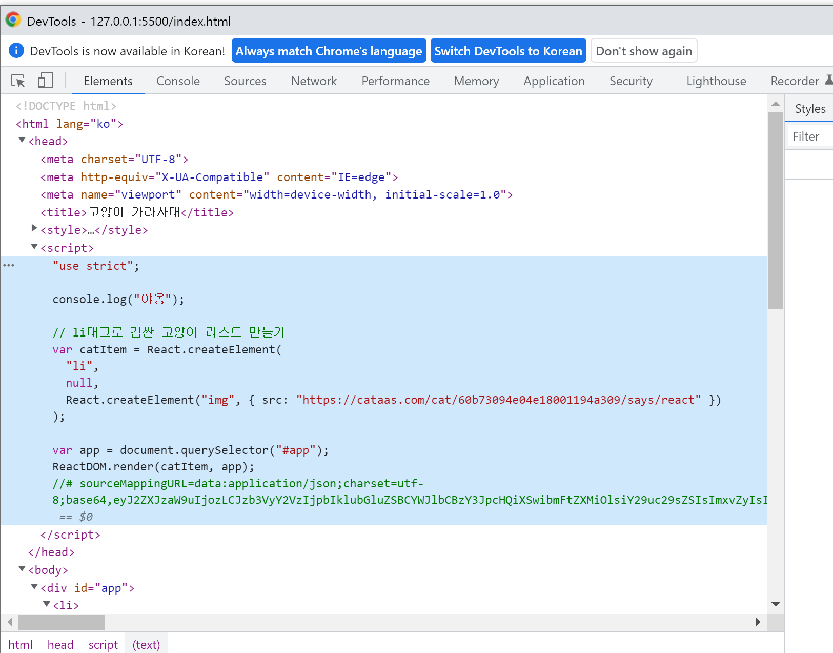 헤더쪽을 보면 내가 작성하지도 않은 스크립트 하나가 추가된 것을 볼 수 있는데