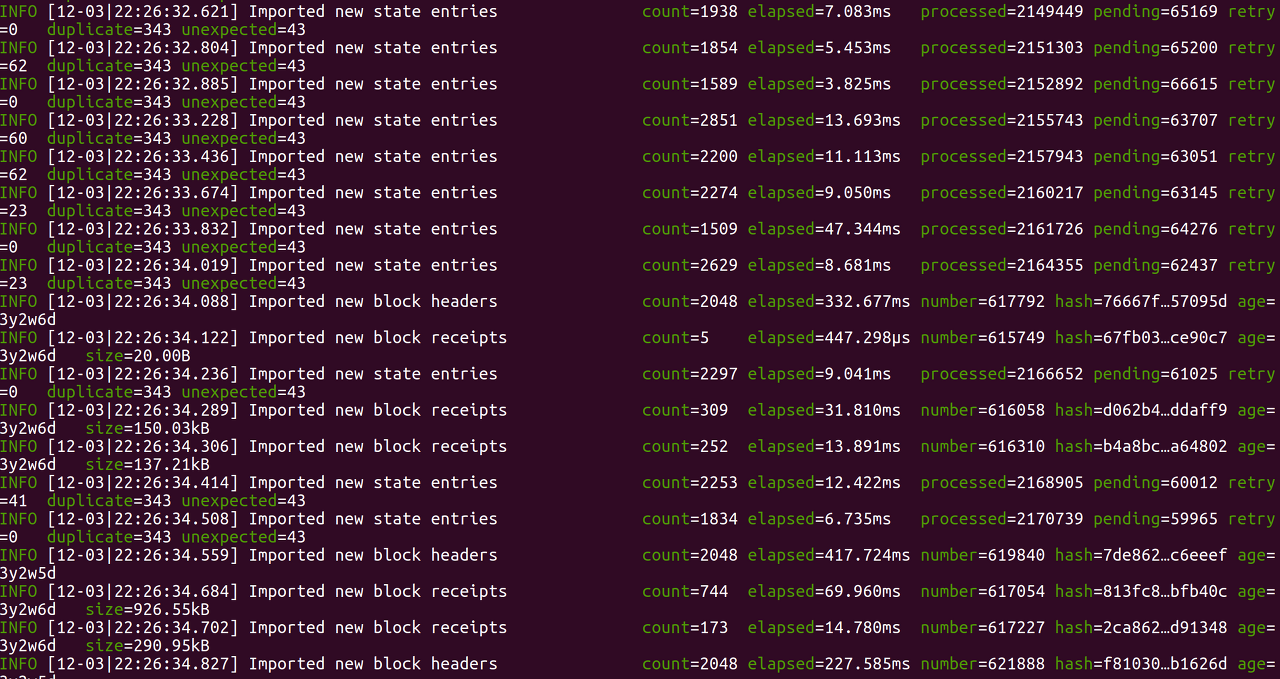 Geth는 블록체인의 복사본을 최신 상태로 유지하기 위해 끊임없이 다른 노드와 통신합니다.