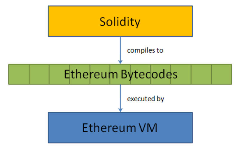 따라서 솔리디티 언어는 이더리움 블록체인에 배포되는 EVM 바이트코드로 컴파일됩니다.