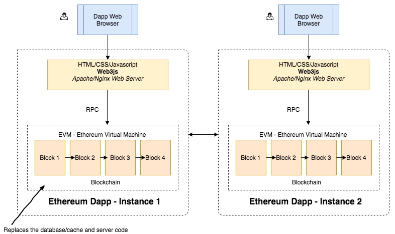 이더리움을 이해하는 가장 좋은 방법 중 하나는 기존의 클라이언트 / 서버 아키텍처와 비교하는 것입니다.