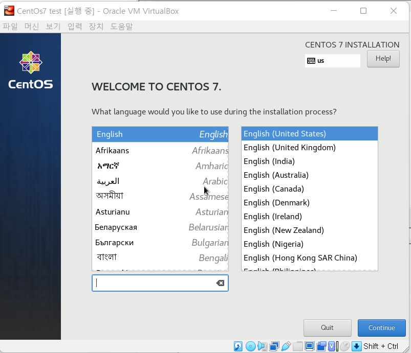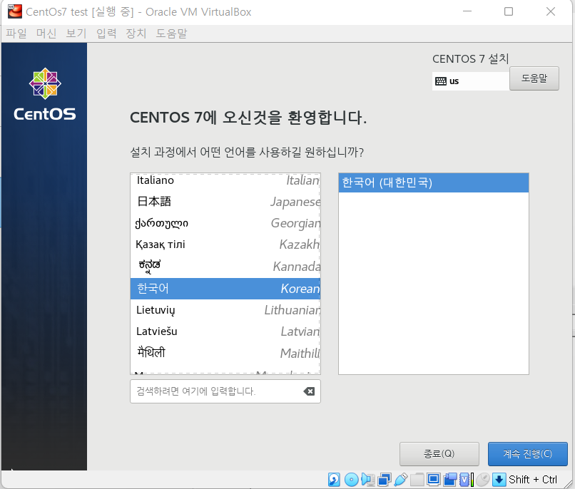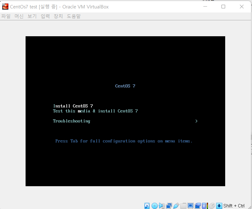 설치를 할 것인지 창이 나타나는데, 여기서 그냥 install centos 7에서 엔터 누르면 된다