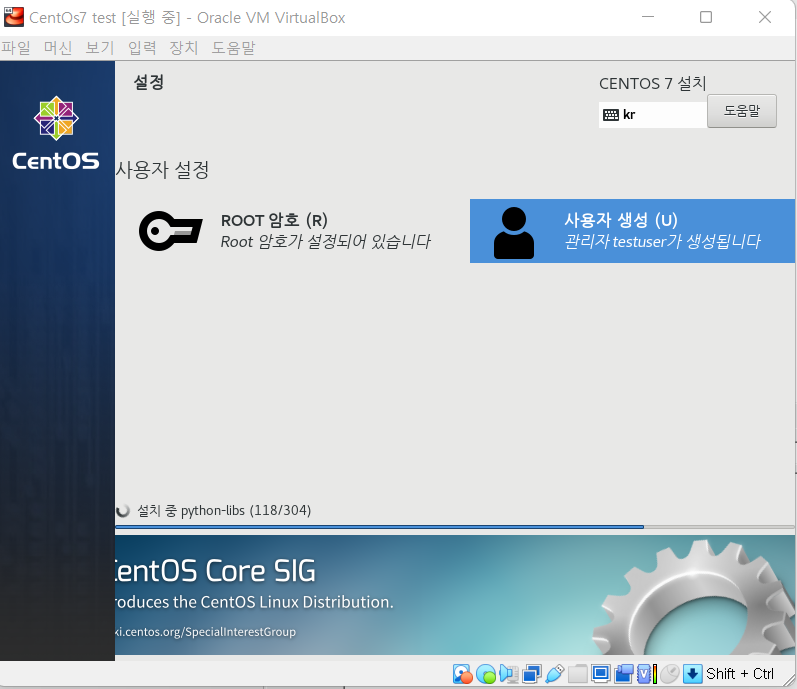 설치하면서 root 암호랑 사용자도 생성해주면 설치는 순조롭게 된다~