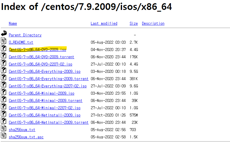 http://mirror.navercorp.com/centos/7.9.2009/isos/x86_64/