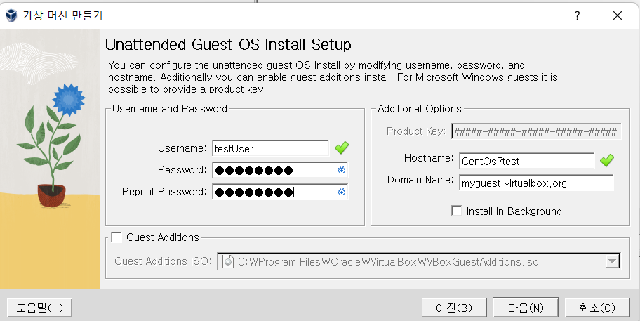hostname은 vm이름이 자동으로 들어가는데 여기 공백이 포함되어 있으면 빨갛게 오류가 뜨니 공백은 제거하고 다음을 누른다.