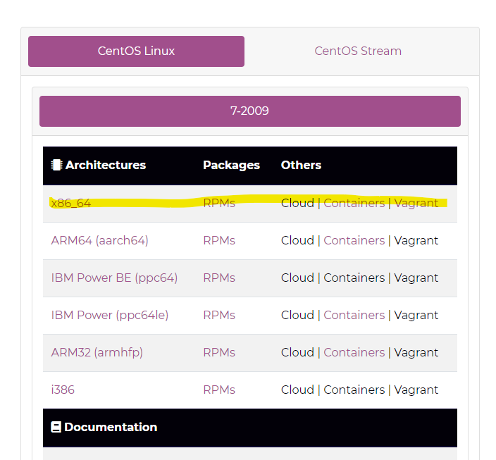 CentOS Linux 메뉴에서 7 (2009) 탭 선택 후 x86_64 링크를 클릭한다.