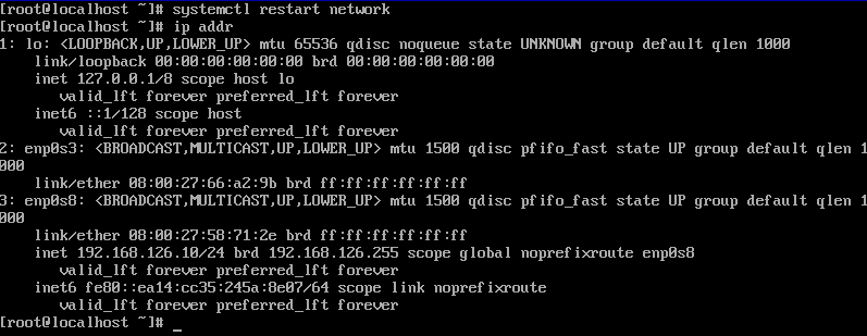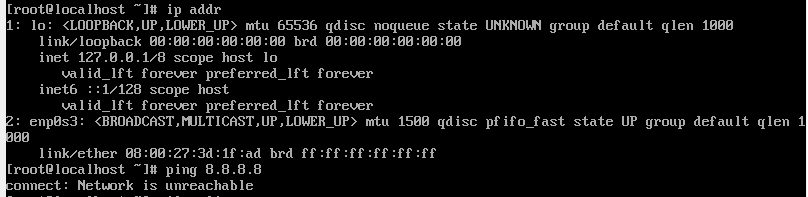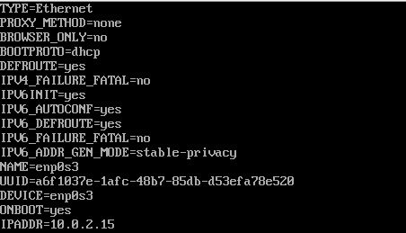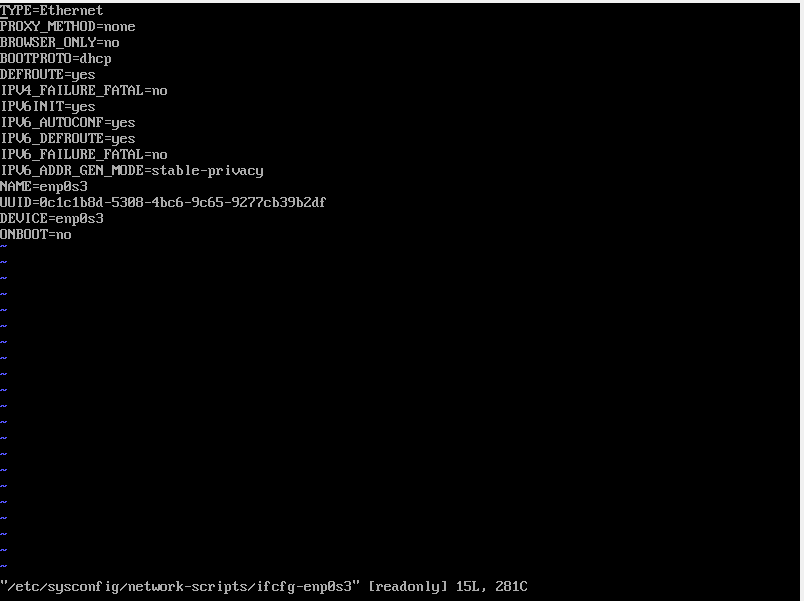 [root@localhost ~]# vi /etc/sysconfig/network-scripts/ifcfg-enp0s3