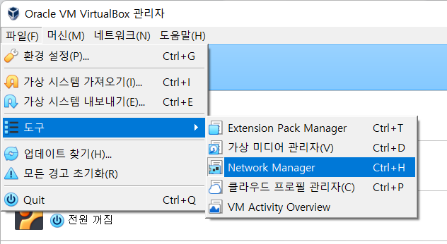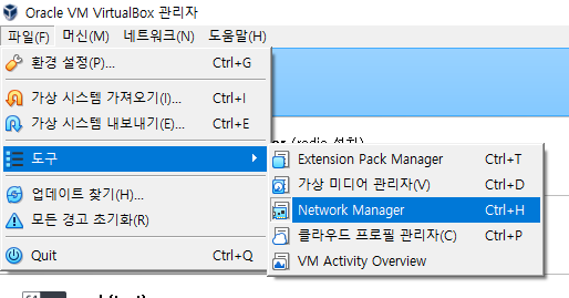 상단바에서 파일 > 도구 > network manager 선택