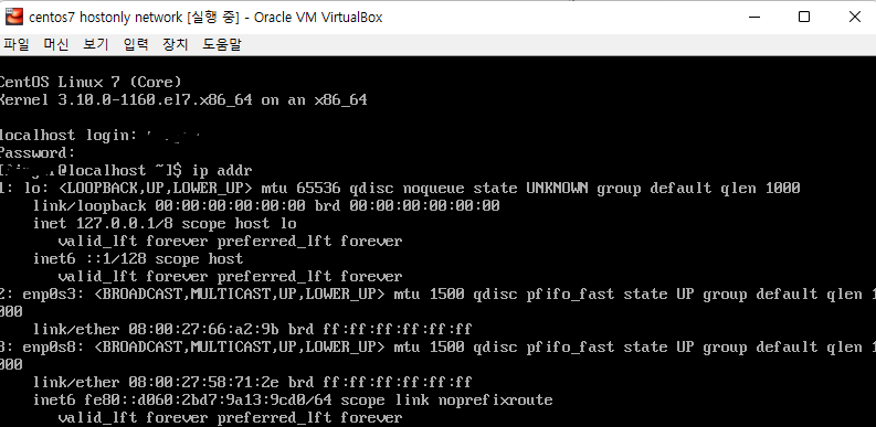 ip addr 날려보면 enp0s3에 ip가 잘 잡힌 것을 볼 수 있다!