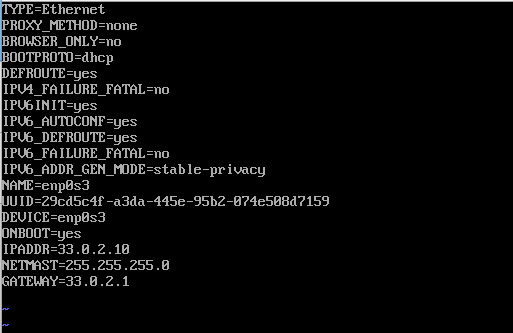 [root@localhost~] vi /etc/sysconfig/network-scripts/ifcfg-enp0s3