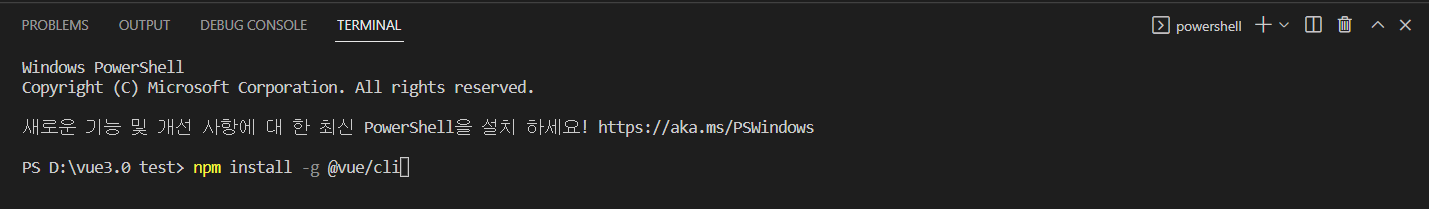 vue-cli 라이브러리 설치가 끝났으면 vue 프로젝트를 생성한다.