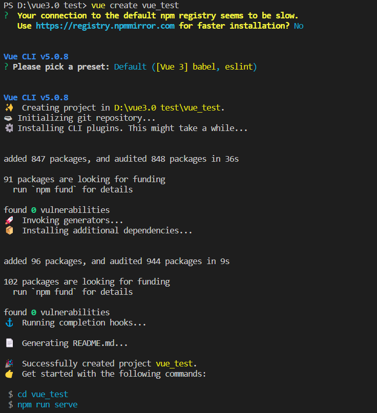 중간에 vue 버전 뭐 선택할래? 하면 3 선택해주면 된다(3이랑 2 중에 고를 수 있음)
