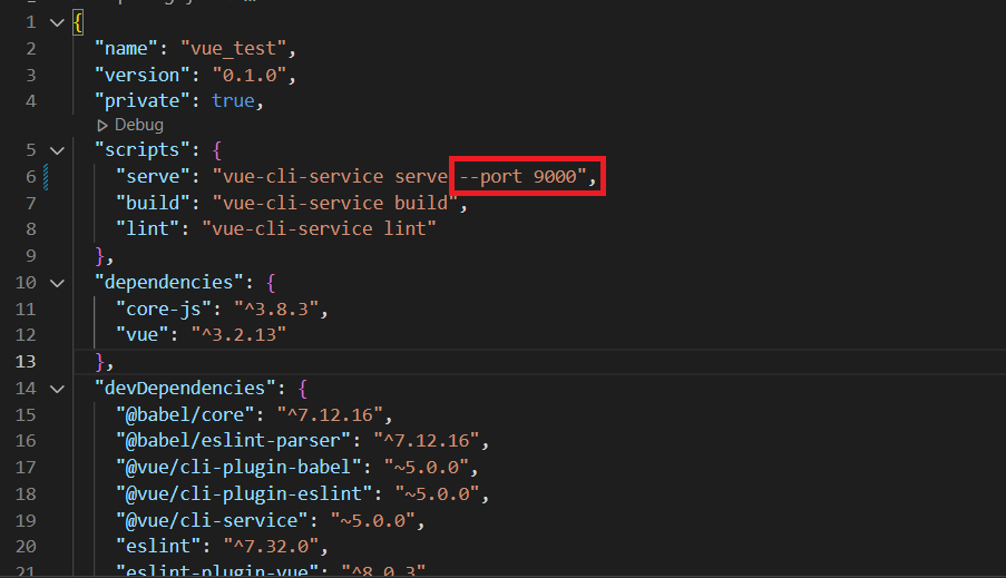 "serve": "vue-cli-service serve --port 9000",