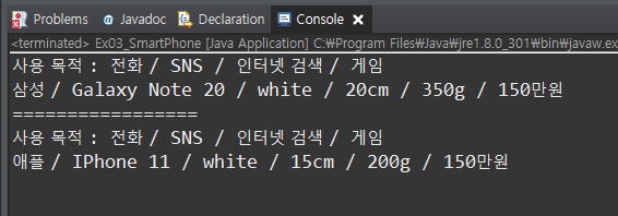 추상클래스를 이용해서 갤럭시와 아이폰의 공통 기능, 각각의 스펙 등을 출력해보자