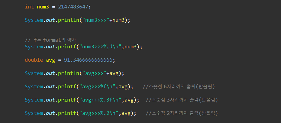 두번째 세번째 줄을 보면, 자동으로 반올림을 해서 출력해준다.