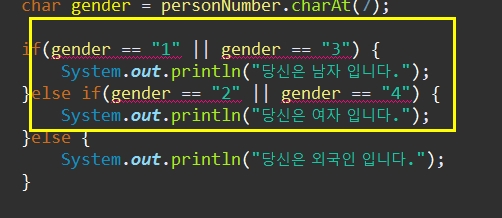 System.out.println("당신은 외국인 입니다.");