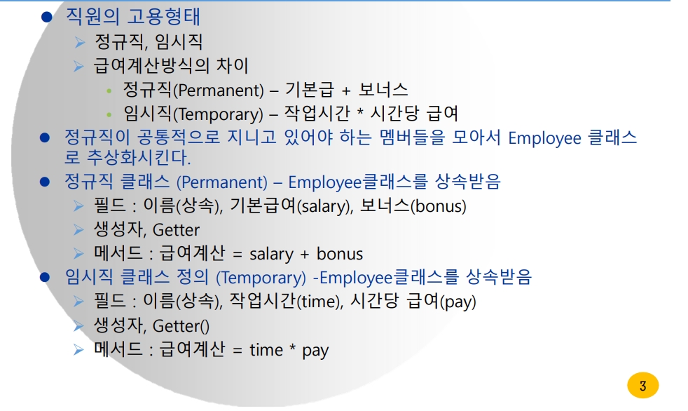 // 정규직과 비정규직의 급여 계산법과 변수가 다르므로 추상메소드로 작성한다.
