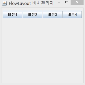 - 배치관리자를 지정하지 않은 경우, default로 FlowLayout 배치 관리자로 배치함.