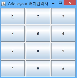 new GridLayout(행, 열, 수평간격, 수직간격)