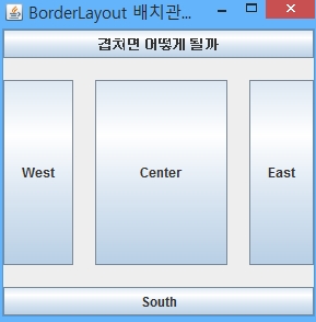 JButton button3 = new JButton("겹치면 어떻게 될까");