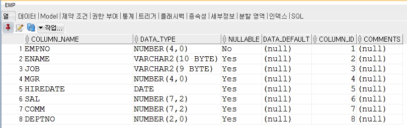 EMP 테이블과 그의 데이터를 아래와 같이 생성하고,