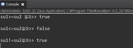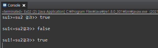 - 결과는 boolean형으로 반환됨. ==> true / false로 결과가 나옴