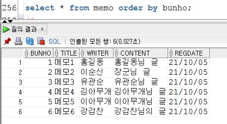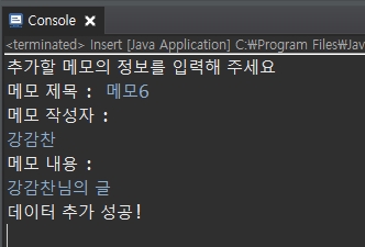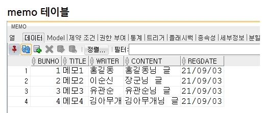 insert문 예문) memo테이블에 새로운 메모를 넣어보자