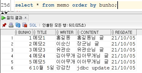 update문 예문) memo테이블의 특정 메모 내용을 수정해보자