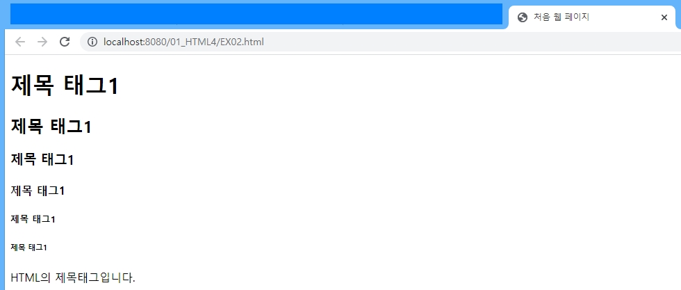 <!--제목 태그 : 제목을 나타내는 태그 ==> <hn> </hn> ==> n 숫자(1~6)